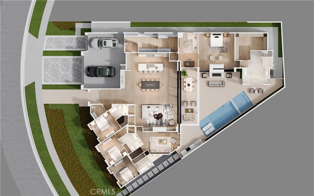 The residence is conceived as a series of calm, open spaces that flow effortlessly between indoors and out. Four well-appointed bedroom suites and four-and-one-half baths are arranged across a thoughtfully considered floorplan designed for both privacy and connection. The primary suite serves as a tranquil retreat, complemented by an adjoining flex space ideal for a private office, wellness studio, or quiet lounge. A separate bedroom wing provides additional comfort for family or guests and includes its own informal living area, creating a relaxed and functional secondary gathering space. Outdoor living is central to the home's design. The expansive rear grounds unfold as a private garden-like setting centered around a pool and spa with Baja shelf, creating an environment equally suited for quiet mornings or relaxed entertaining. Clean architectural lines, natural materials, and a seamless indoor-outdoor connection establish a sense of understated luxury throughout. Located just moments from the beaches of Corona del Mar, Fashion Island, and The Village's renowned dining and boutiques, Harbor View Hills South remains one of the community's most sought-after residential neighborhoods.
